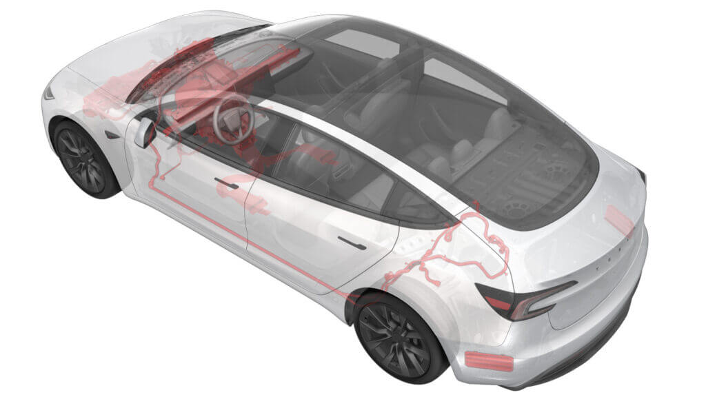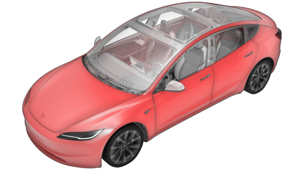 Tesla Model 3 Parts (Jan 2024 US) BODY 1001 – Bumper and Fascia 1010 – Body Panels 1020 – Windshield and Body Glass CLOSURE COMPONENTS 1120 – Trunk 1133 – Closure Assist Mechanisms and Hinges 1145 – Exterior Door Handles 1150 – Door Glass Regulators 1170 – Seals Body Closures EXTERIOR FITTINGS 1201 – Wheel Arch Liners 1203 – Undertray and Diffuser 1205 – Badges and Films 1207 – License Plate Mountings 1209 – Exterior Mirrors 1220 – Exterior Trim 1224 – Luggage Compartment Trim 1225 – Underhood Trim 1227 – Liftgate Trough Trim 1230 – Trailer Hitch SEATS 1301 – Front Seat Tracks and Motors 1304 – Front Seat Assemblies and Hardware 1305 – 2nd Row Seat Assemblies and Hardware 1307 – Front Seat Covers, Pads and Trims 1308 – 2nd Row Seat Covers, Pads and Trims INSTRUMENT PANEL 1405 – Instrument Panel INTERIOR TRIM 1505 – Interior Mirror and Sun Visors 1511 – Trunk Trim 1513 – Door Trim 1518 – Pillar and Sill Trim 1519 – Center Console 1520 – Headliner 1530 – Carpeting and Mats HV BATTERY SYSTEM 1601 – HV Battery Assembly 1630 – HV Battery Electrical Components ELECTRICAL 1702 – LV Battery 1710 – Harnesses 1715 – Electronic Control Modules 1720 – Radar Sensors 1722 – Cameras 1740 – Exterior Lights 1745 – Keyless Entry and Security 1750 – Wipers and Washers 1753 – Horn THERMAL MANAGEMENT 1810 – Cabin HVAC 1820 – Refrigerant System 1830 – Cooling System 1840 – Thermal System LABELS 1901 – Labels